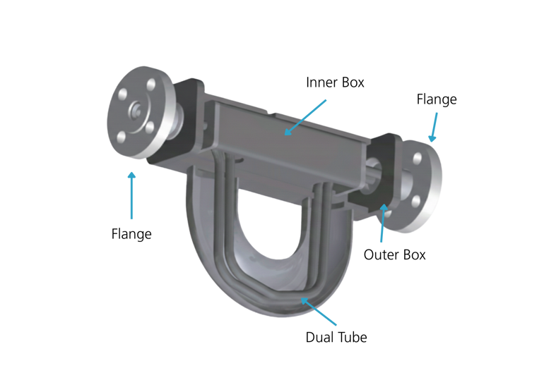 Mechanical Decoupling: The inner casing houses the sensitive measuring tubes, completely isolating them from the "noise" of the piping system.